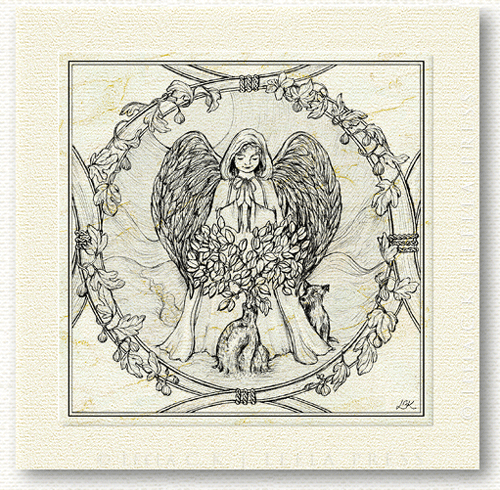 The mounted Artwork is printed with archival inks onto ivory silkweave card, hand-embellished with gold & silver highlights, and signed & dated at the back. (Prints are more finely hand-detailed)